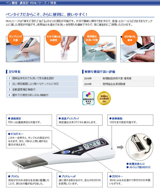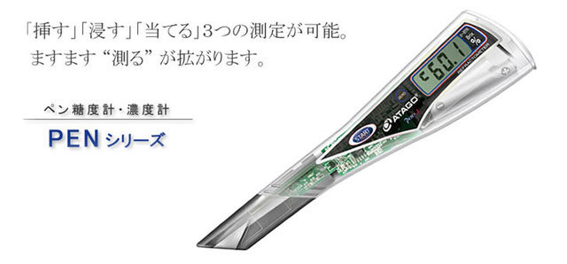 ■「挿す」「浸す」「当てる」3つの測定が可能なPENシリーズの食塩水専用目盛モデル