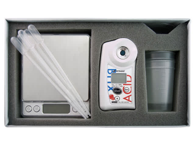 トマトや混ぜ物のない無塩トマトジュースなどの糖度と酸度を測定できます。マスターキットには、天秤、ポリビーカー2個、 アタッチメント、スポイト5本、電池2本が標準付属になります。測定後は水洗いができる防水タイプです。安心信頼の日本製です。