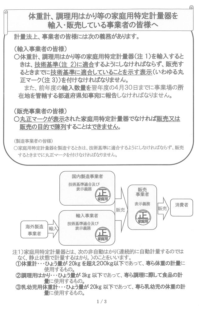 販売事業者は、家庭用の体重計、調理用はかりなどについては、丸正マークのついたはかりを販売する義務があります。