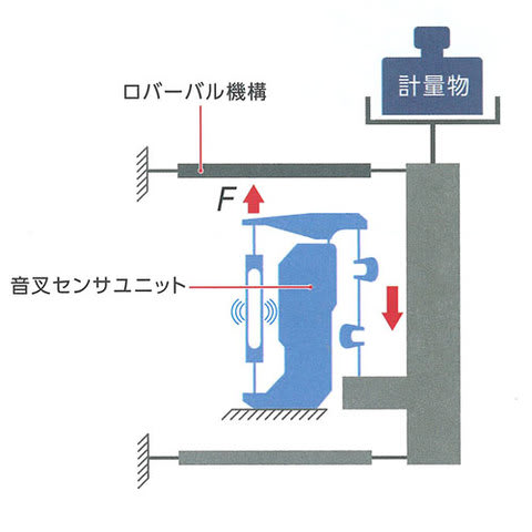 音叉2個をつないだ形状の振動子に荷重を加えると