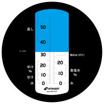 ・測定範囲:汁濃度:0.0 ~ 56.0 %、食塩水濃度:0.0 ~ 28.0 %(自動温度補正)
