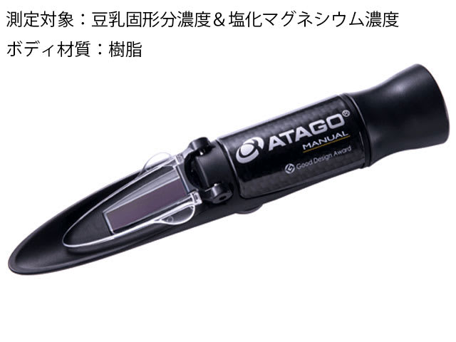 豆乳濃度計 MASTER-豆乳Mは 測定範囲が豆乳固形分濃度:0.0 ~ 20.0 %、塩化マグネシウム濃度:0.0 ~ 12.0 %です。JAS規格に基づく豆乳の大豆固形分%の測定に欠かせない豆乳目盛です。