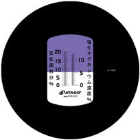 目盛は赤外線水分計に準じています。豆腐作りに用いられるにがり(塩化マグネシウム)の濃度目盛も付いています。