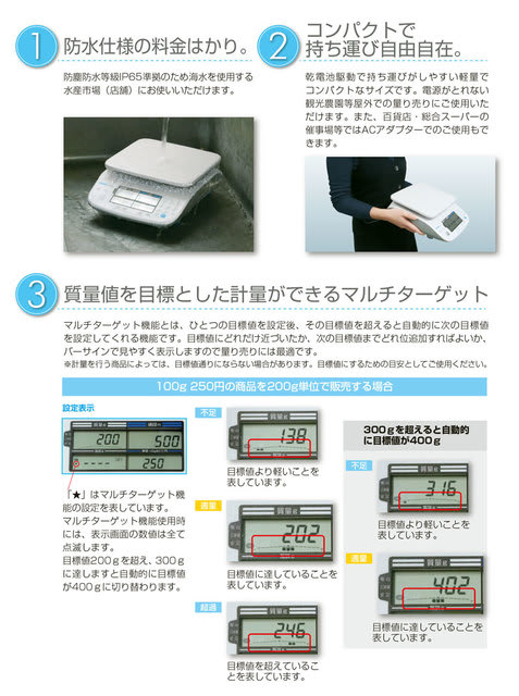 コンパクトで持ち運びしやすい、防水型料金はかり。