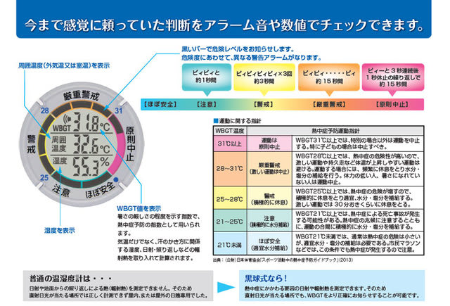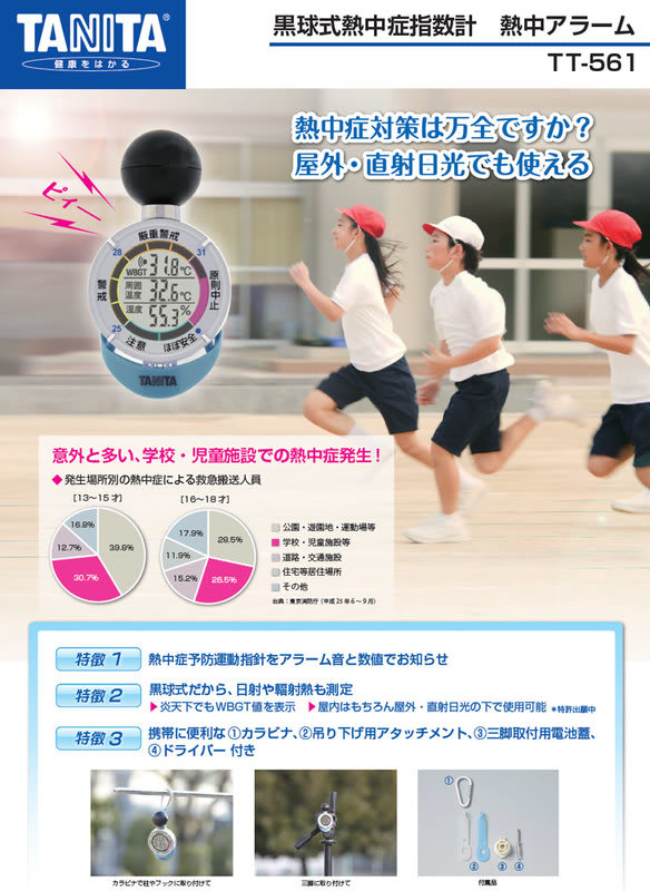 一般向け用商品としてタニタの黒球式熱中症指数計 熱中アラーム TT-562という商品もございます。